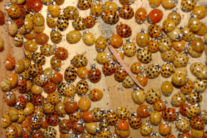 These insects sometimes enter our living spaces accidentally and become trapped when they can’t find their way back outside. They can be discouraged from entering homes by keeping weather seals around windows and doors in good condition. Keeping landscape plants pruned back so that they do not touch the structure and maintaining a 6-inch strip of bare soil around the foundation will help reduce the numbers of these and other insects entering homes.