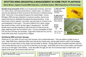 Since the spotted wing Drosophila (SWD), Drosophila suzukii, was first found in Michigan in 2010, it has become a serious pest of commercially-grown raspberries, blueberries, cherries and other fruit crops, resulting in the loss of well over 25 million dollars. This insect can also be a troublesome pest in home fruit plantings, especially for people who wish to keep pesticide use to minimal levels.