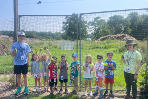 Today the campers took a trip to the CSA fields (Community Supported Agriculture). Farm Darby met us at the front gate to take us on a Sprouts Camp Field tour. Campers visited the herb beds to learn how to extract the oils from the leaves to smell the different scents, to the carrots and squash to learn about the life cycle, to the fennel to taste the sweetness in a stem and fluffy feather feeling of their foliage. Then to the HOT tomato hoops to play a ripe tomato eye spy! The final two visits were to the Purple peppers, yep the CSA has purple peppers and the apple orchard to visit the bee hives. Camper loved to learn about plant life cycles and learn more about the importance of bees in an ag.
