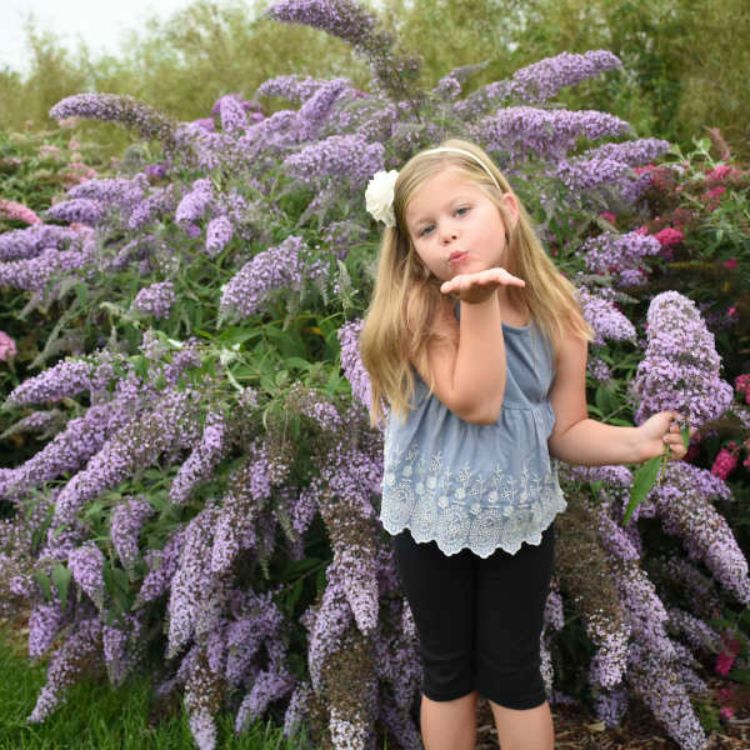 Buddleia aka Butterfly Bush is a floriferous summer-blooming shrub with colorful and fragrant flowers. Although Buddleia is no new-kid-on-the-block, there have been many new cultivars introduced recently. These newer varieties often have improved upon desired characteristics, and most are more suitably sized for today’s smaller gardens. ‘Grand Cascade’ (photo 2) is a unique variety and one of my favorites! It has huge, light lavender flower panicles that are often longer than a foot and can be 4” thick. If you’re unfamiliar with Buddleia, that’s enormous! The flower panicles are so long, they cascade downward which gives the plant a unique weeping shape. It grows to be about 5-6 feet tall, 7-8 feet wide, and it is best to give them room to showcase those huge flowers and appreciate the cascading form.