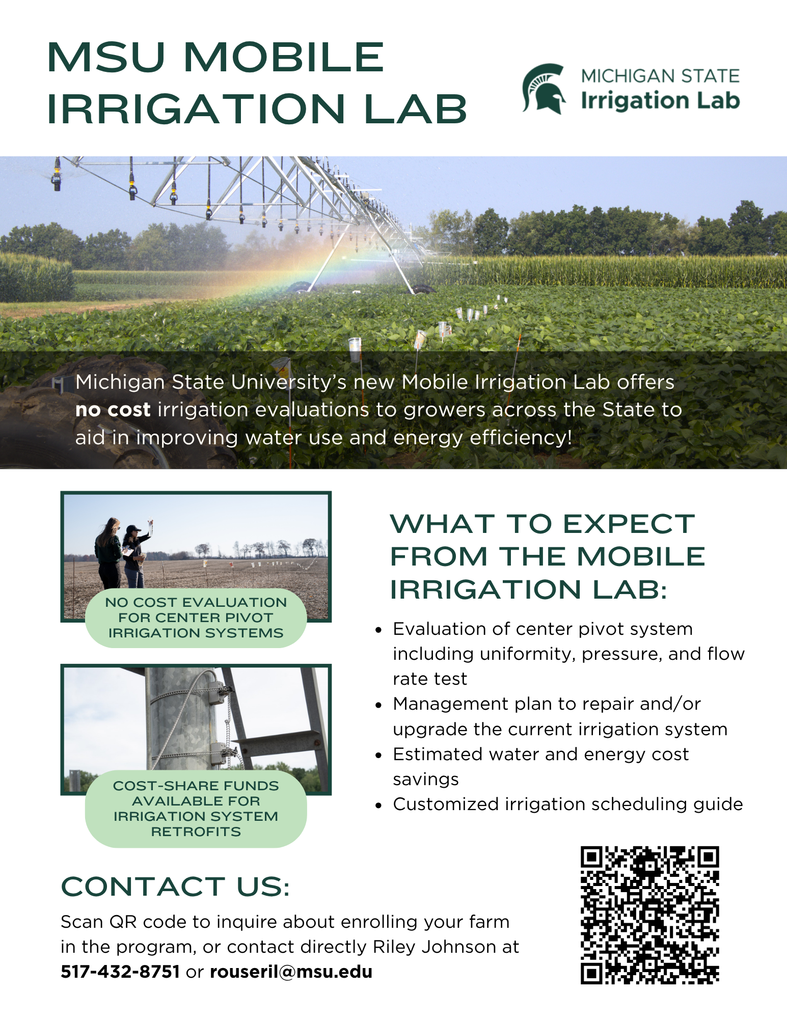 Interested in having the Mobile Irrigation Lab visit your farm? Complete this form to request a site evaluation or contact Riley Johnson at rouseril@msu.edu for more information.