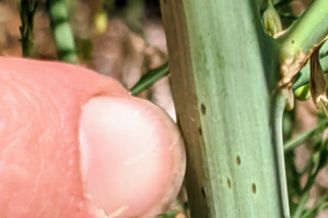 Asparagus growers can start thinking about herbicide choices for field shutdown. Shutdown is a good time to chip away at perennial weeds like quackgrass, milkweed, field bindweed and Canada thistle. Glyphosate has activity against milkweed and quackgrass. Experience suggests including an acidifier with glyphosate is important for some perennial weeds. Quinstar is labeled for asparagus and has activity against field bindweed and thistle. If Canada thistle is an issue, Spur is another good option. Don’t forget to print your indemnified label if you are applying Dual Magnum at lay-by.