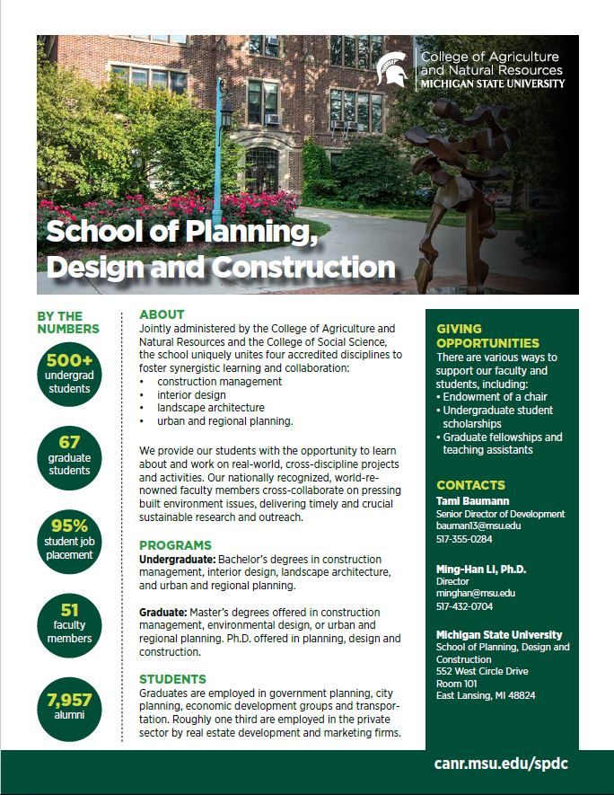 Learn about giving opportunities in the School of Planning, Design and Construction.
