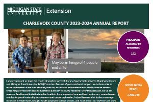 I am pleased to share the results of another successful year of partnership between Emmet County and Michigan State University (MSU) Extension. Because of your continued support, we’ve made a difference in the lives of youth, families, businesses, and communities. MSU Extension offers a broad range of re-search-based educational outreach to county residents. Over this past year, we’ve empowered families and individuals to live healthier lives, supported new and local businesses, created opportunities for youth leadership development and career exploration, helped farmers with business management and mental health, brought health programs to local schools, and much more. Our staff lives and work alongside coun-ty residents. We are rooted in community relationships and are responsive to community needs. Our part-nership with you makes this all possible. On behalf of the MSU Extension team serving Emmet County, thank you for another great year. We look forward to your continued support and hope you will be able to join us during one of our upcoming programs.