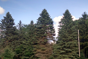 Colorado blue spruce has long been a favorite landscape conifer for Michigan homeowners and landscapers. Unfortunately, blue spruce trees throughout the state are in widespread decline due to an array of insect pests and fungal pathogens, particularly needlecast diseases that cause trees to progressively lose their needles. As a result, homeowners and landscapers are often searching for alternative conifers to replace blue spruce trees. This document lists medium to large conifers adapted to Michigan soils and climate, which can fulfill many of the same landscape functions as blue spruce. They often act as specimen trees, which are used as focal points in the landscape, or they screen out unwanted views. The list of trees is divided into two groups: those that are relatively common in the nursery trade and should be available in most nurseries, and those that are less common but can be found in larger garden centers or specialty nurseries.