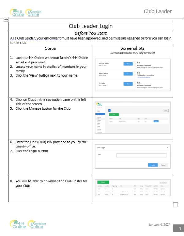 As a Club Leader, your enrollment must have been approved, and permissions assigned before you can login to the club.