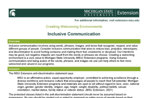 - Creating Welcoming Environments: Inclusive Communication https://www.canr.msu.edu/resources/creating-welcoming-environments-inclusive-communication