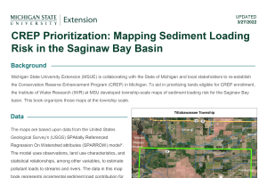 Michigan State University Extension (MSUE) is collaborating with the State of Michigan and local stakeholders to re-establish the Conservation Reserve Enhancement Program (CREP) in Michigan. To aid in prioritizing lands eligible for CREP enrollment, the Institute of Water Research (IWR) at MSU developed township-scale maps of sediment loading risk for the Michigan portion of the Western Lake Erie basin. This book organizes those maps at the township scale.
