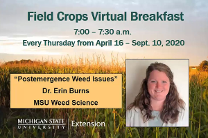 The MSU Extension Field Crops Virtual Breakfast weekly discussion for May 28, 2020, focuses on dry bean planting, presented by Scott Bales, MSU dry bean specialist.
