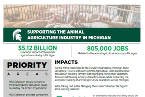 Michigan State University (MSU) Extension’s pork team is co-responsible for the development of an SPS plan at a state level and for individual pork operations. The goal of the plan is to design a workable business continuity strategy for pork operations with no evidence of the FAD infection.