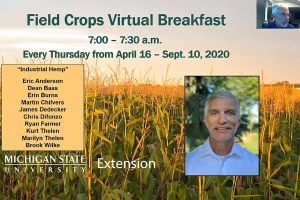 The MSU Extension Field Crops Virtual Breakfast weekly topic for August 15, 2019, focused on industrial hemp, presented by Kurt Thelen, MSU agronomist.