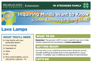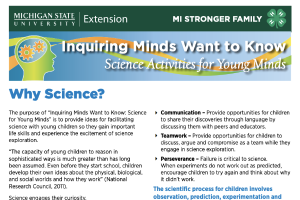Remember: The purpose is NOT to teach a specific topic but to help children experience the excitement of science exploration!
