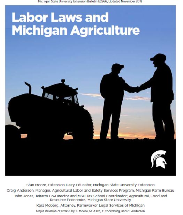 An important single reference for farmers who employ a number of full-time workers or any seasonal or migrant labor is a subscription to the Agricultural Labor and Safety Services (ALSS) Newsletter offered by Michigan Farm Bureau. The program provides in-depth reviews of labor and related issues, employment postings, and on-site services. Contact Michigan Farm Bureau at 517-679-5352 or on their website (under Labor & Safety Products). A detailed guide to U.S. Department of Labor (DOL) posters is available online.