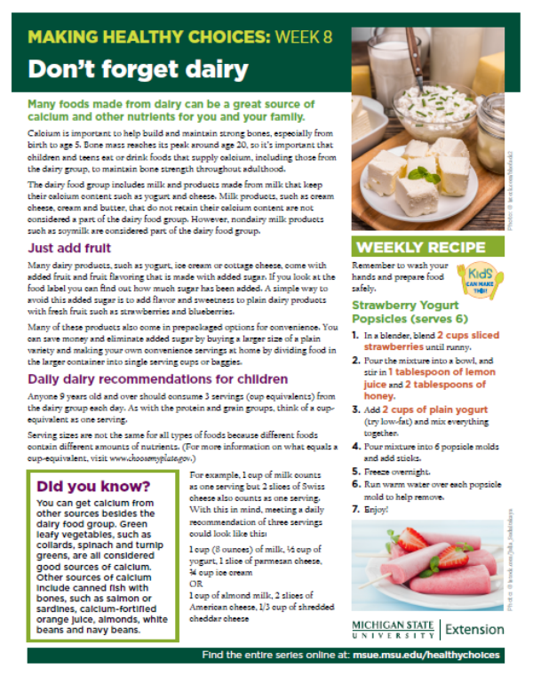 Many foods made from dairy can be a great source of calcium and other nutrients for you and your family.