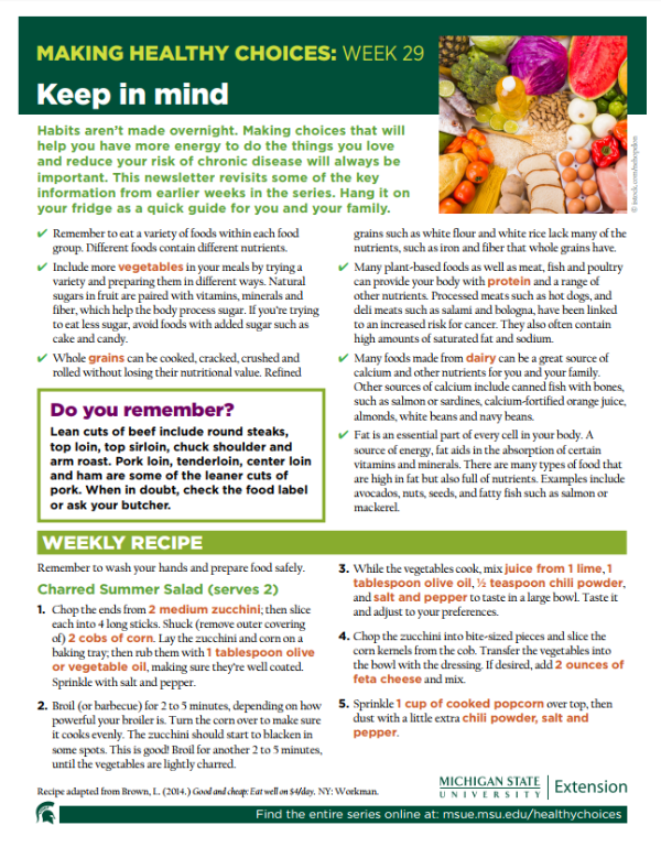 Habits aren’t made overnight. Making choices that will help you have more energy to do the things you love and reduce your risk of chronic disease will always be important. This newsletter revisits some of the key information from earlier weeks in the series. Hang it on your fridge as a quick guide for you and your family.