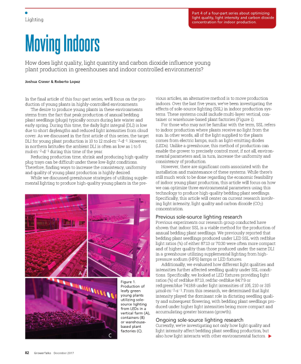 How does light quality, light quantity and carbon dioxide influence young ornamental plant production in green houses and indoor controlled environments?