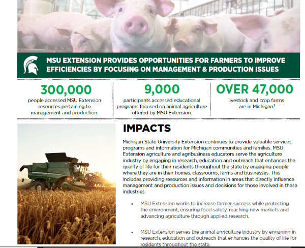 - 300,000 people accessed MSU Extension resources pertaining to management and production.