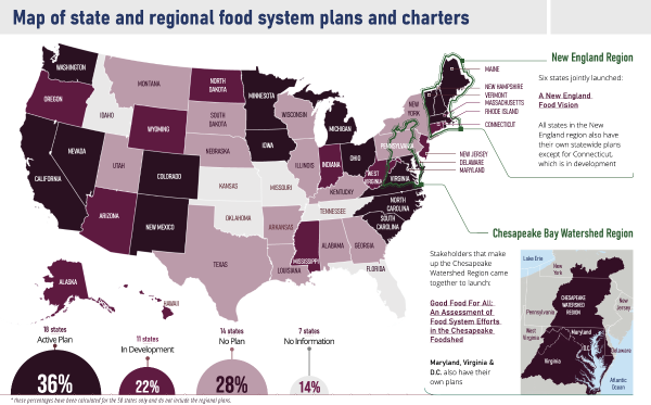 Download the report to explore trends and a directory of state and regional food systems plans and charters!