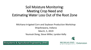This resource provides a printable soil water balance sheet and crop-specific guidance for scheduling irrigation using evapotranspiration, rooting depth, rainfall, and crop stage to help optimize water use in corn and soybean production.