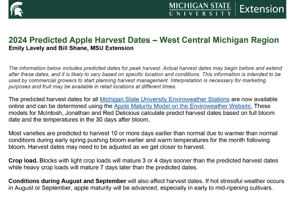 2024 Predicted Apple Harvest Dates – West Central Michigan Region