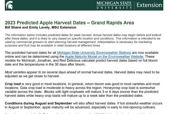 2025 Predicted Apple Harvest Dates – Southwest Michigan Region
