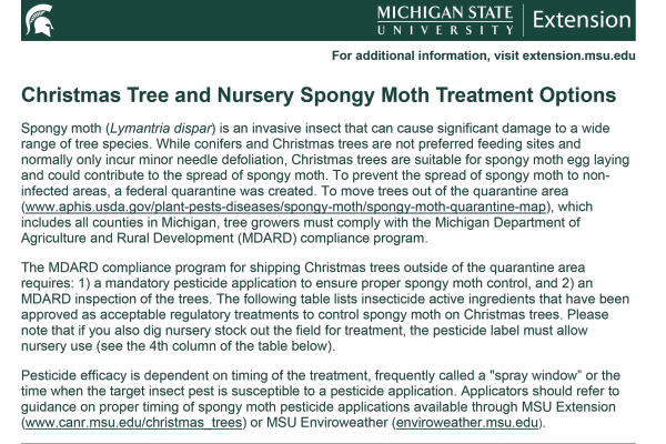 Christmas Tree and Nursery Spongy Moth Treatment Options